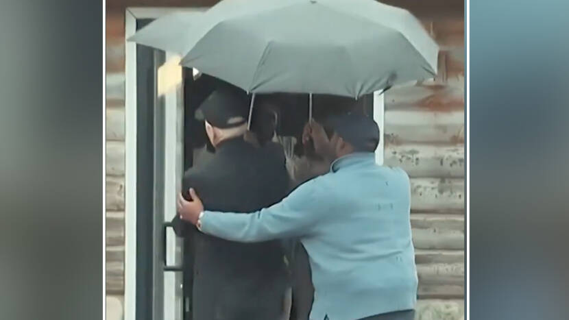 A visibly confused Joe Biden wandered off in the rain Saturday but was eventually rescued by caretakers carrying umbrellas.